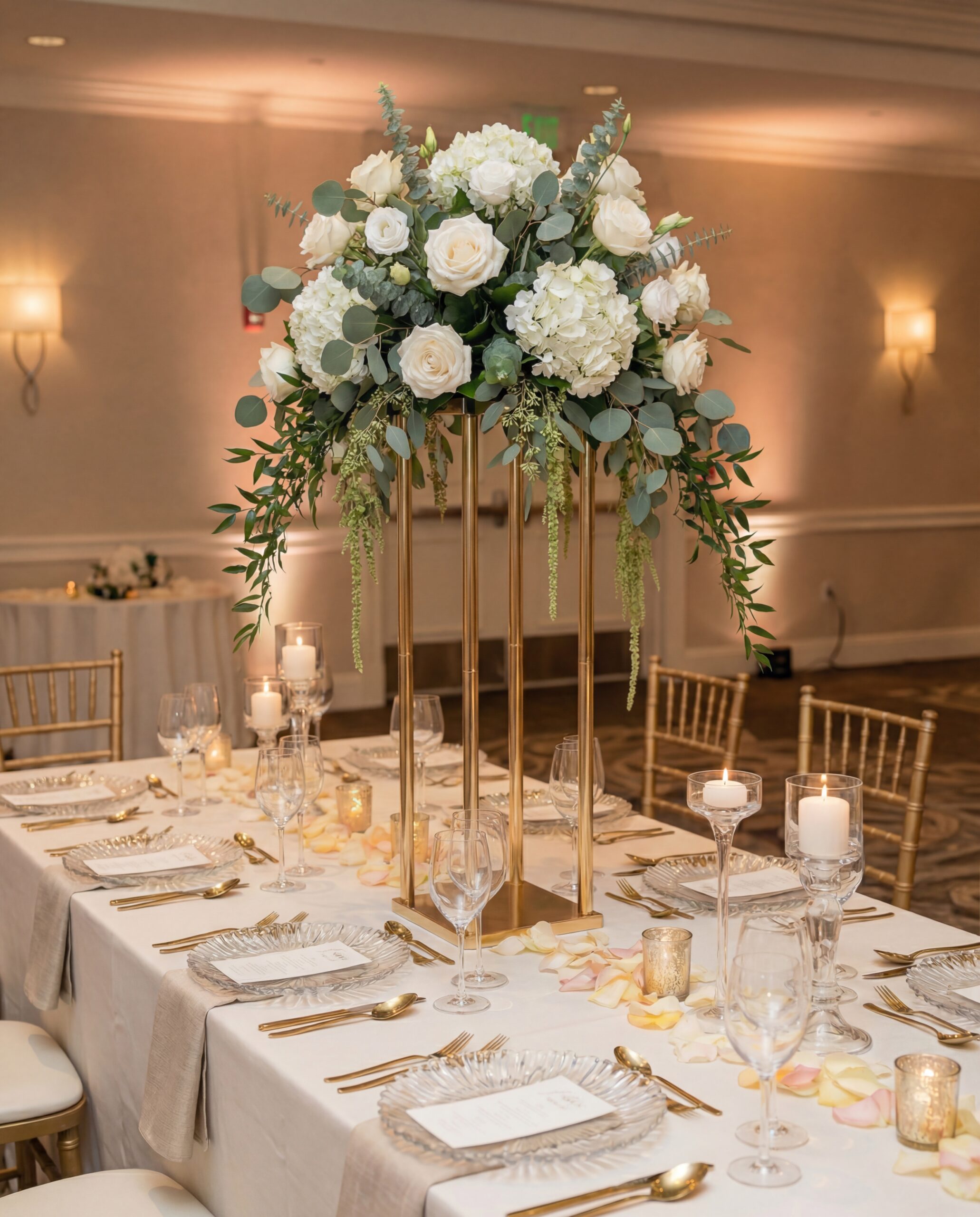 -Designul său vertical permite poziționarea aranjamentelor florale la înălțime, fără a obstrucționa vizibilitatea invitaților, ceea ce îl face ideal pentru nunți, botezuri, evenimente corporate, gale sau petreceri private.